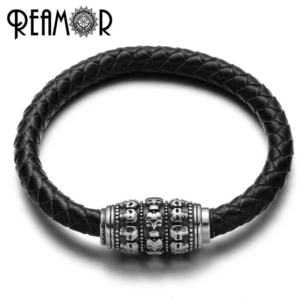 REAMOR ювелирные изделия размер отверстия 8 мм 316l браслет из кожи...