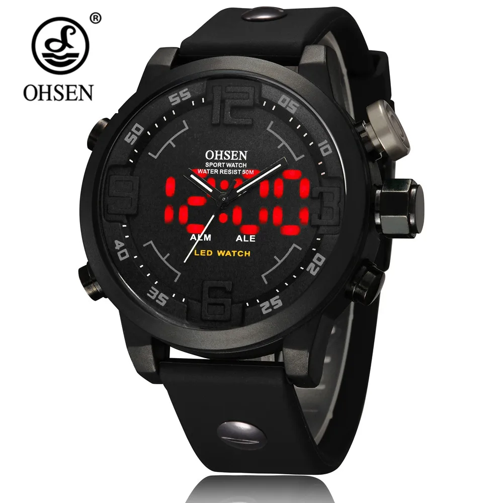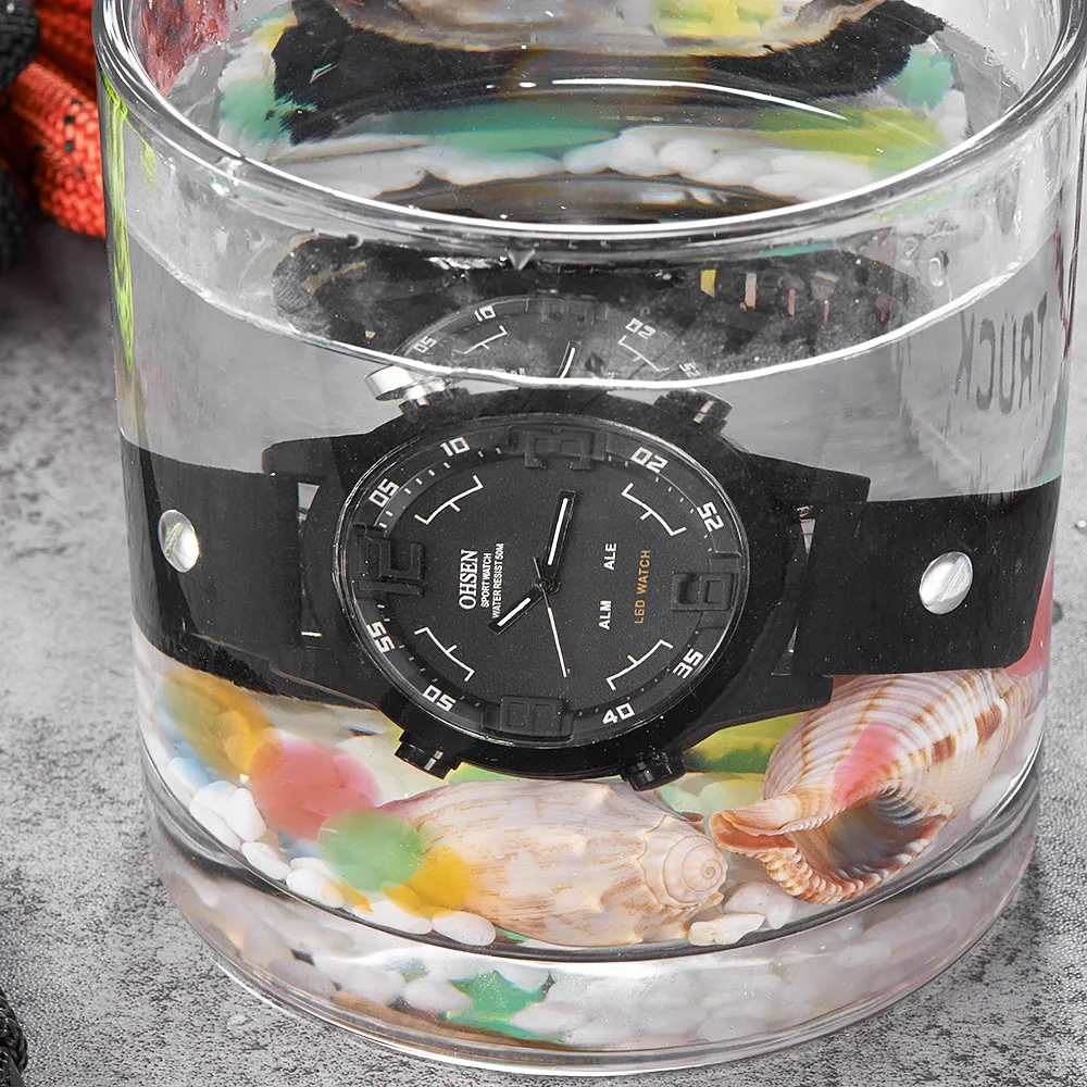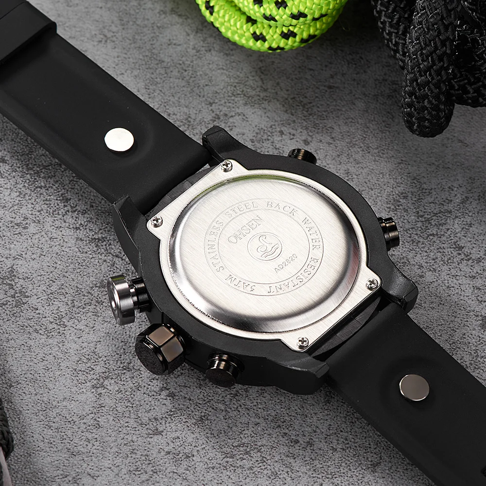 Модный бренд OHSEN Цифровые кварцевые деловые военные мужские наручные часы водонепроницаемый резиновый черный ремешок светодиодные подарочные часы мужские часы