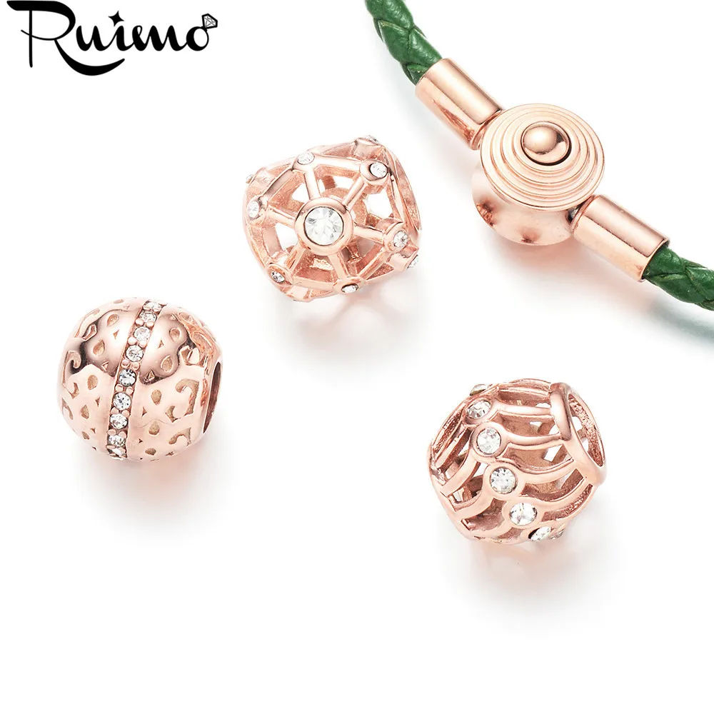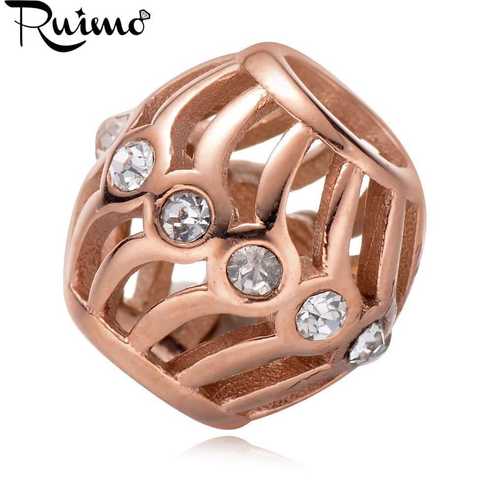 Золотистые бусины-шармы RUIMO из нержавеющей стали 316l с кристаллами, Европейские Бусины-шармы для изготовления браслетов