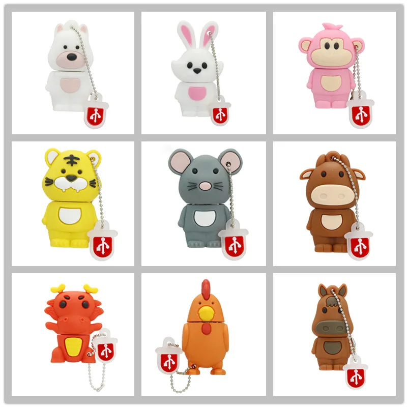 Милый китайского зодиака Usb флэш-накопитель 4 ГБ 8 ГБ Usb накопитель памяти 16 Гб флэш-накопитель 32 Гб милые животные "Свинка", "Обезьянка флеш-накопитель 128 ГБ флэш-диск