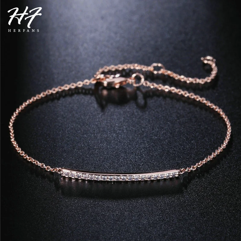 Тонкий Простой браслеты из нержавеющей стали для женщин кубический цирконий розовое Белое золото Цвет Тонкий браслет-цепочка для женщин Ювелирные наборы для ухода за кожей, модное ювелирное изделие H126