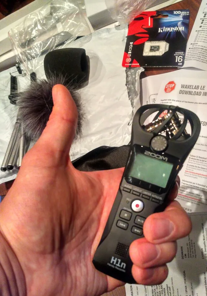 Заказано с настольной треногой, она оказалась откровенным шлаком, всё кривое-косое, болтается, короче, не советую. Сам звукозаписыватель понравился, можно запитать от внешнего питания или подключить к компу как USB-микрофон. Карты больше 32 ГБ не поддерживает, хоть как форматируй. Может писать каналы не одинаково, всё дело в контактах разъёма, можно просто несколько раз вставить-достать штекер в микрофонный вход, ещё можно попробовать промыть этот вход спиртом из шприца. Разъёмы имеют поверхностный монтаж к плате, поэтому надо быть очень аккуратным при подключенных к ним проводам, чтобы не оторвать контактные площадки от платы. На сайте производителя есть русификатор, но часть интерфейса остаётся на английском, в общем, на любителя. В комплекте есть простенький чехольчик, типа как из геотекстиля. Есть в продаже жёсткий чехол, но он под старую модель H1 (без n), она покрупнее, а для этой велик и она в нём как погремушка, с ветрозащитой ещё как-то более или менее, но всё равно болтается.
