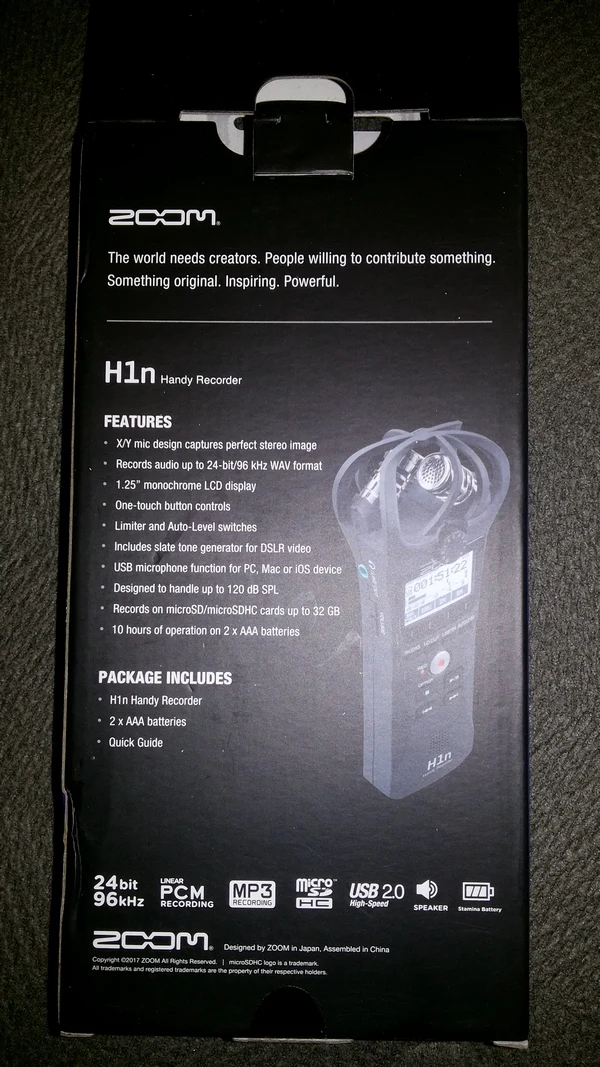 Zoom recorder H1n отлично работает, микрофон boya-m1 funcioando также идеально, microSD карта 16 Гб ОК, более подробную информацию на фотографиях две батарейки AAA (не входят в комплект), аккумулятор LR44 с отворотом (входят в комплект), коробка пришла немного помятого продукта не поврежден. Рекомендуемый товар и продавец, все согласно ad. Не облагается налогом.