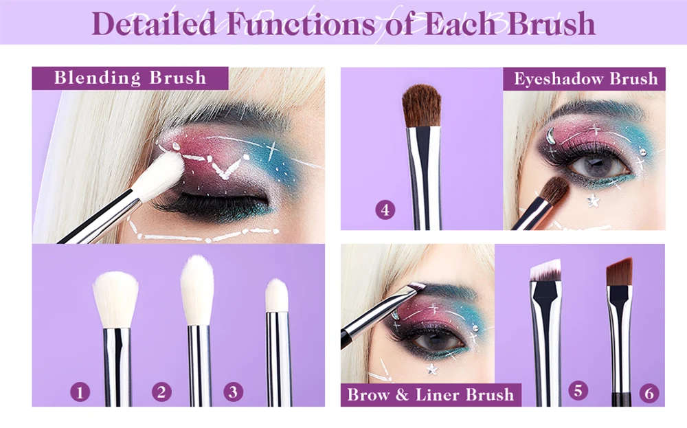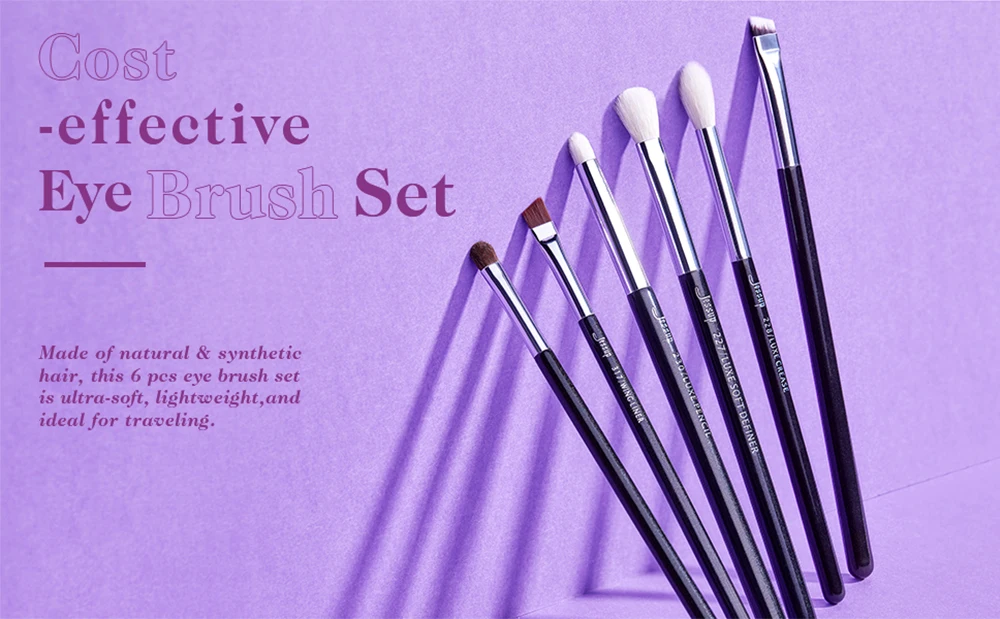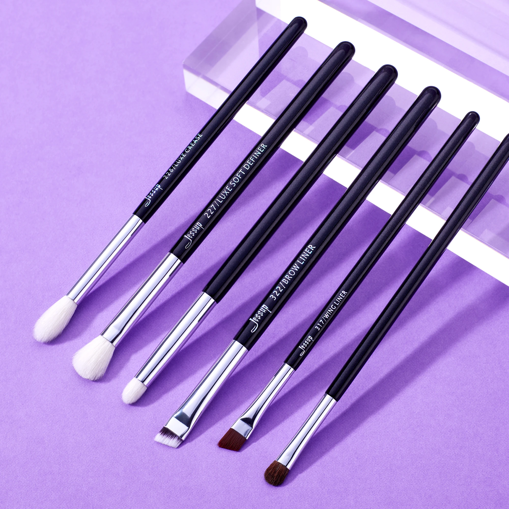 Набор кистей для глаз Jessup, 6 шт., Профессиональный набор кистей для макияжа, красота, тени для век, смешивание натуральных синтетических волос, черныйсеребристый