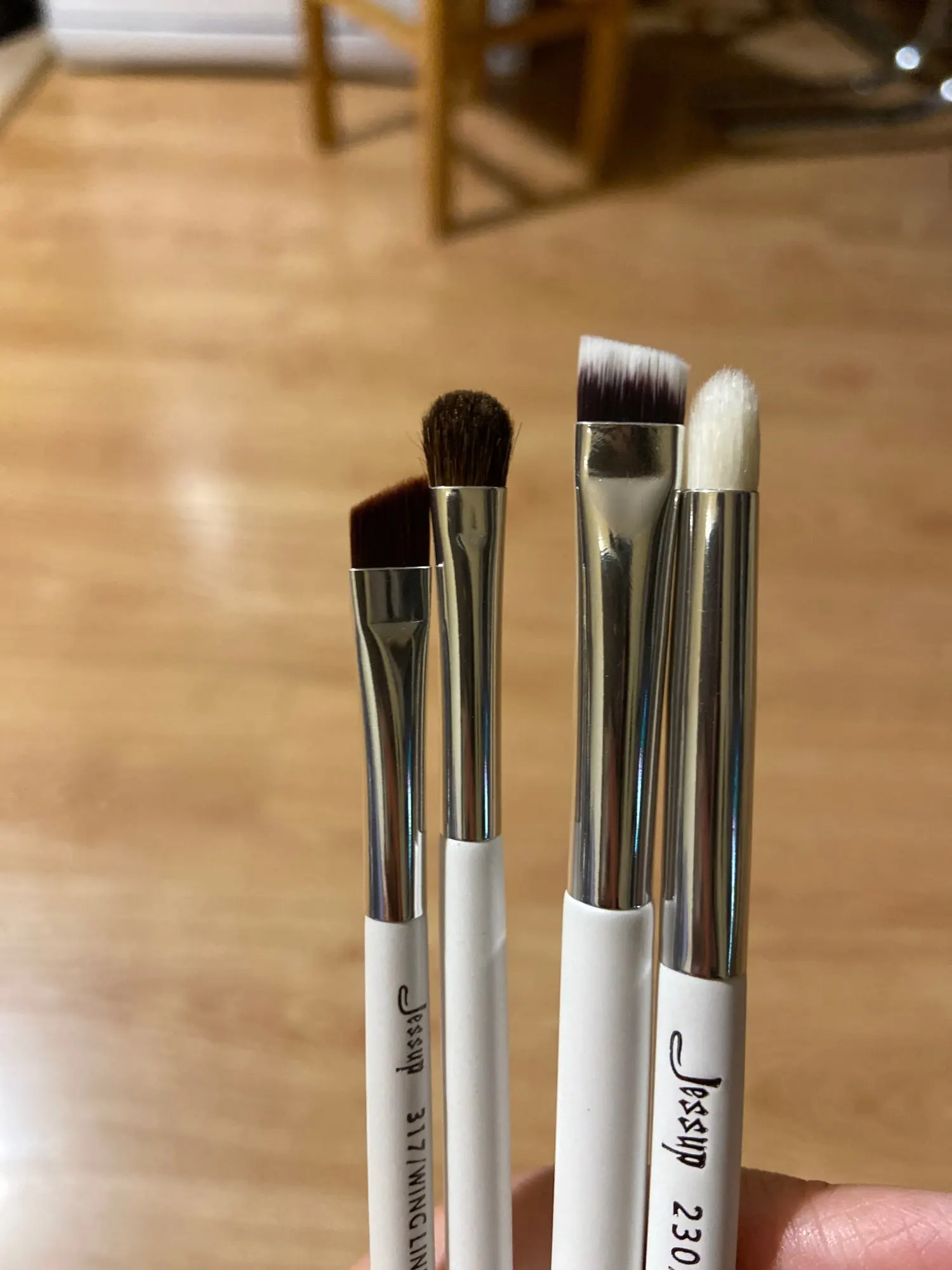 Начиталась и наслушалась отзывово и решила купить эти кисти. Взяла набор для глаз. Красят неплохо но.... мне колет веко. Поэтому сняла звездочки.