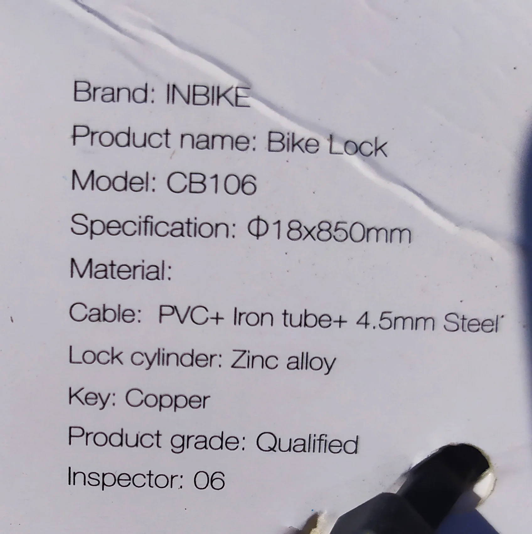 Велосипедный Замок INBIKE, 0,85 м, водонепроницаемый, с 3 ключами