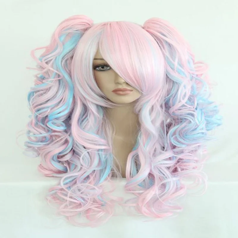 HAIRJOY женский длинный синтетический вечерние к 70 см, синий, смешанный, розовый, волнистый, с 2 хвостиками, 30 цветов на выбор