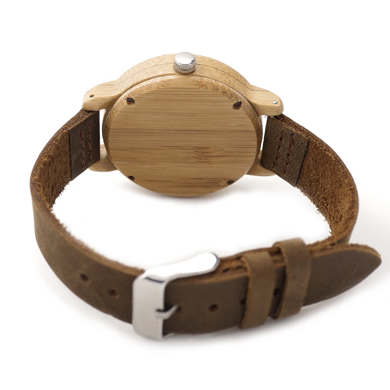 Часы женские кварцевые с бамбуковым деревянным ремешком и кожаным ремешком