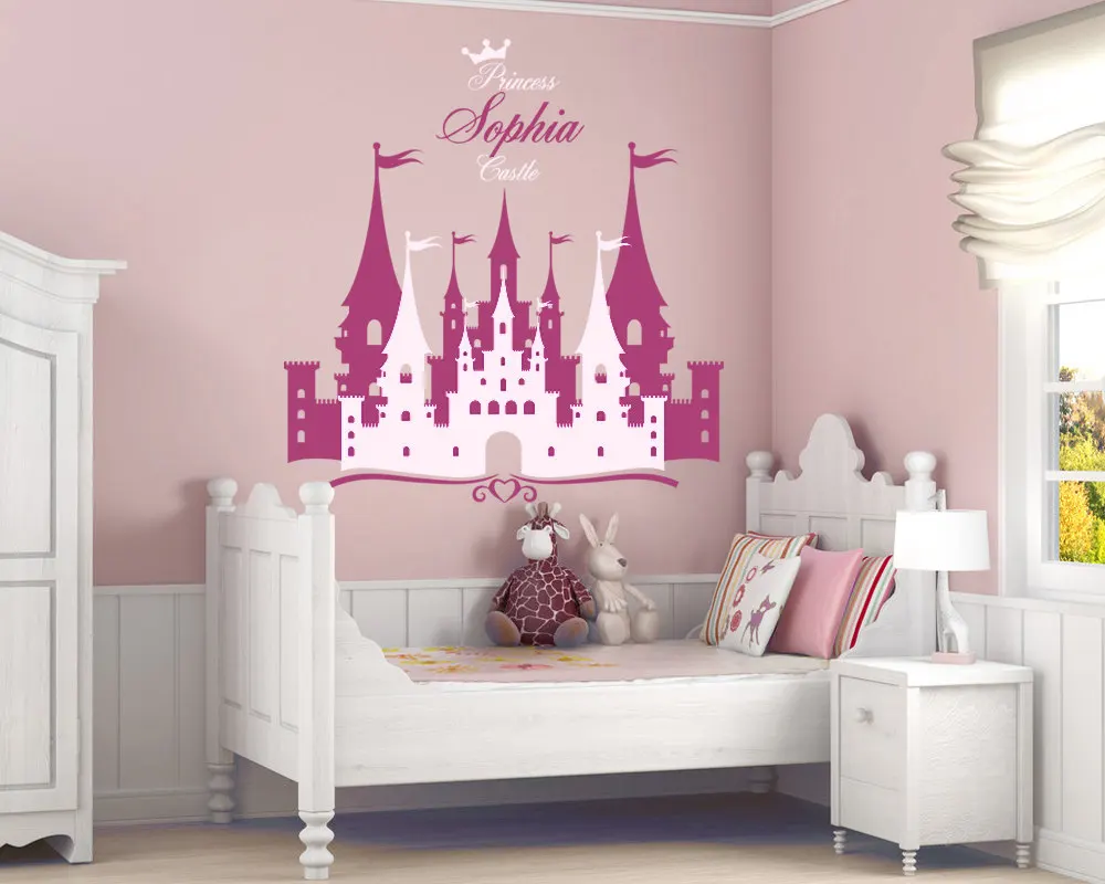 Наклейка на стену с изображением замка принцессы, Виниловая наклейка с персонализированным именем для девочек, наклейка со съемным замком, домашний декор, Фреска ZA280