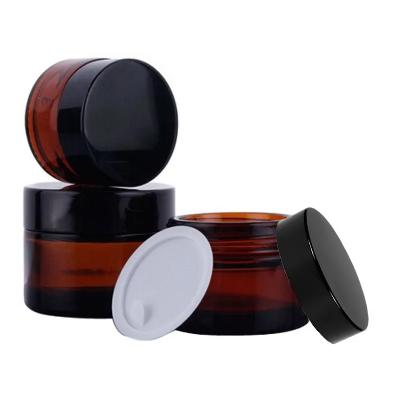 Баночка стеклянная Янтарная прямая с черной пластиковой крышкой, 30 г, 6 шт.