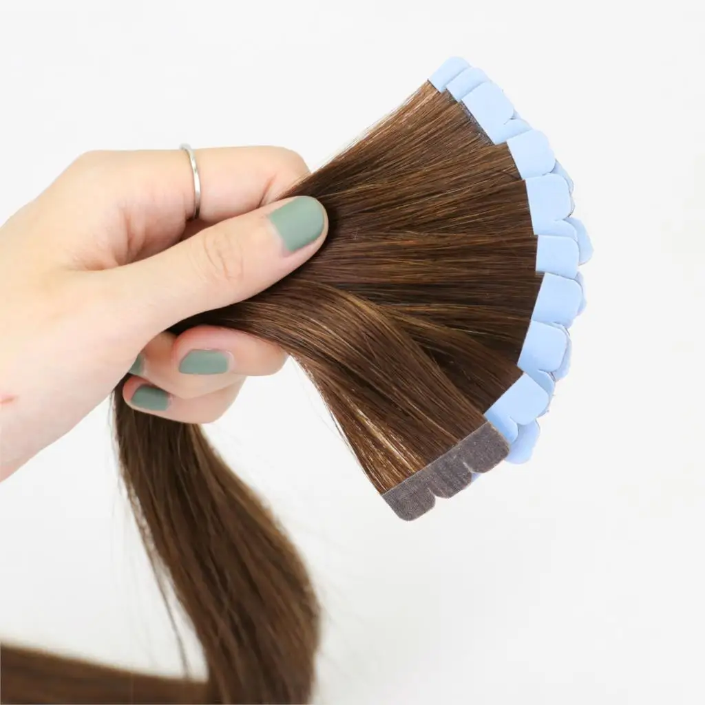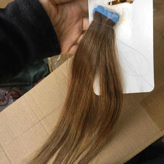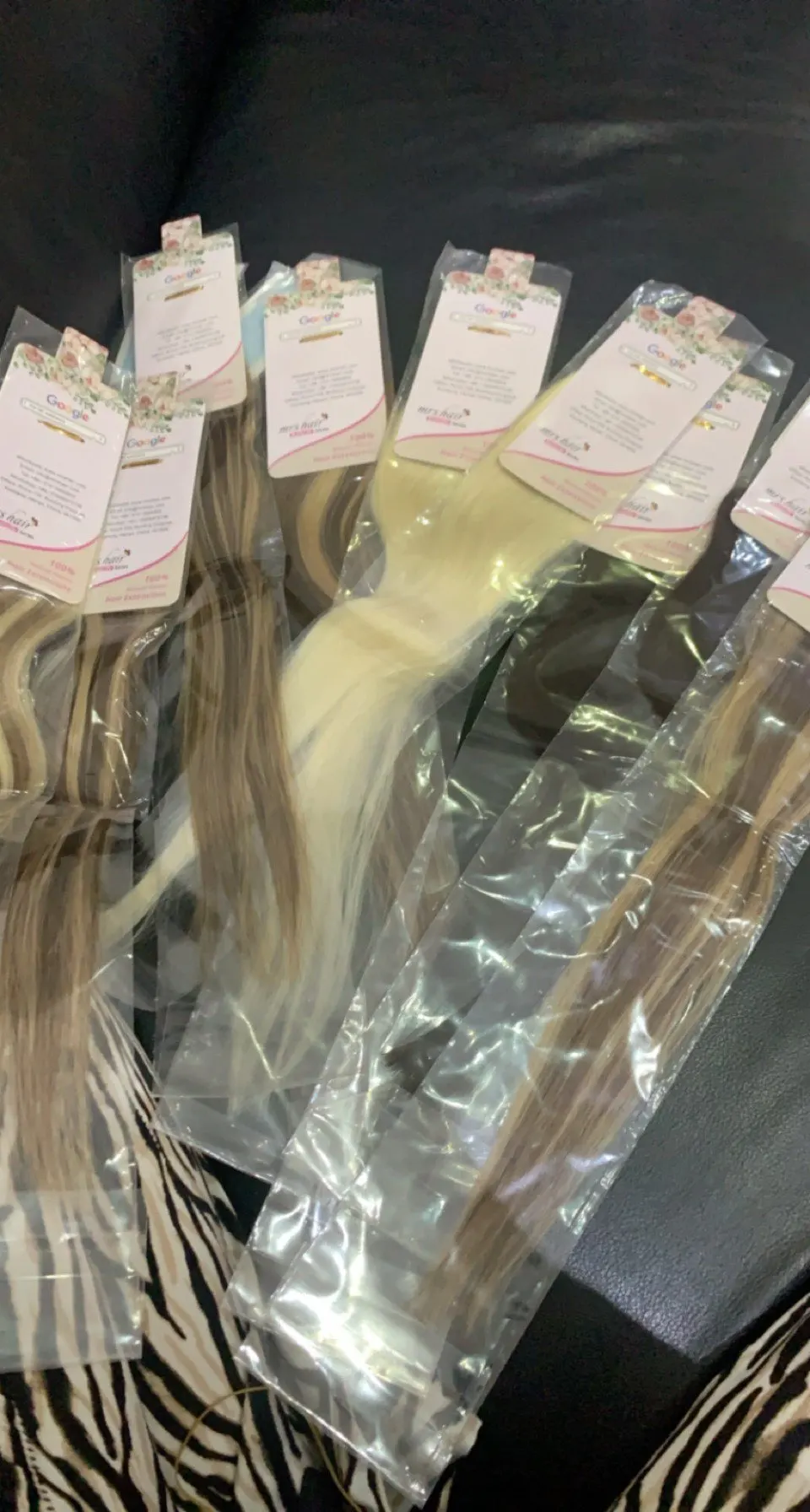Beautiful hair. I wear Great Lengths individual bonded extensions usually only done at hair salons but every now and then I like to take a break and do my own tapes and these are excellent and I think as nice as the bonded ones as they move so natural being mini tapes. I fold both sides in to make one stand per piece and its a great look. The colour is excellent for a foiled glam blonde look without being the all over fake blonde look the stripes look odd on the swatch photo but when in the hair it makes it much more natural. I will order many more from this seller. I do buy longer extensions than i want my finished hair to be as I love my hair to be thicker at ends and not so tapered even though the tapered hair is more natural. I have worn the hair a week now and washed it a few times and used GHD straightener on it and all is good! Trust this seller it is great hair.