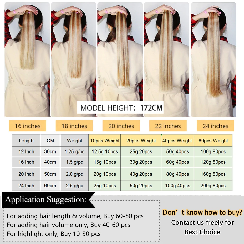 MRSHAIR ленты в Пряди человеческих волос для наращивания 16 "18" 20 "22" 24 "20 штук не Реми прямо бразильский волос на Невидимый ленты PU кожа утка