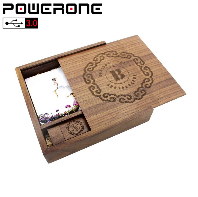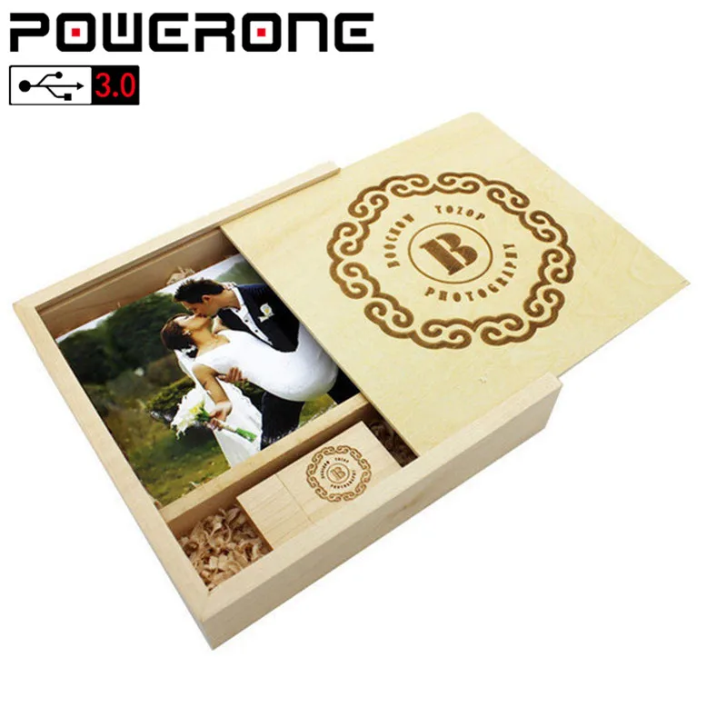 POWERONE USB 3,0 Бесплатная доставка логотип клиента кленовый деревянный фотоальбом ручка usb + коробка карта памяти Флешка 64 ГБ 32 ГБ Фотография Свадебные подарки