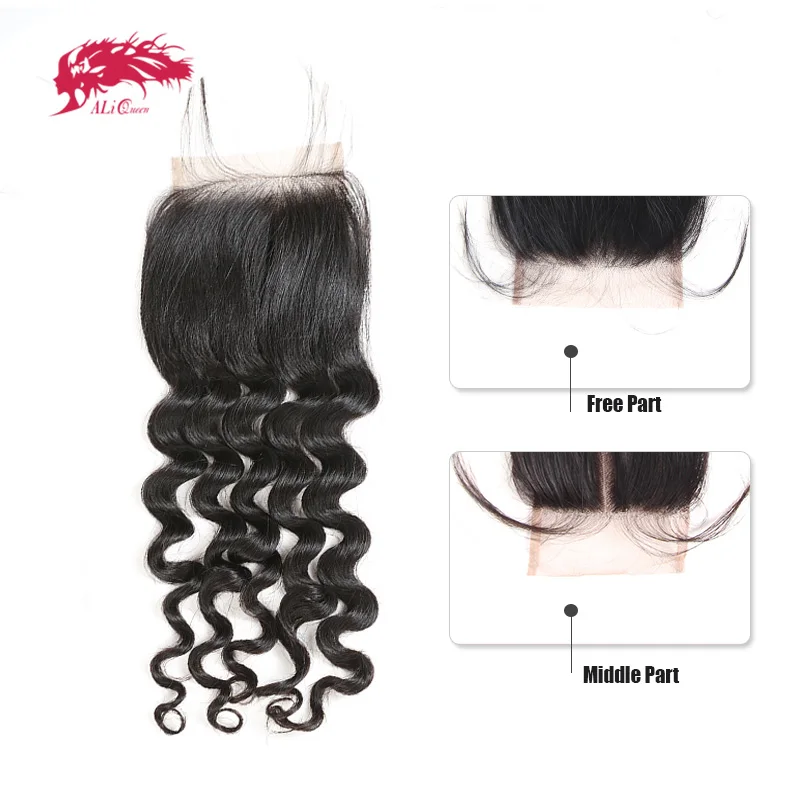 Ali Queen бразильские натуральные волосы, натуральные волнистые кружевные волосы, естественный цвет, свободная деталь 4x4, кружевные застежки с детскими волосами 10-20 дюймов