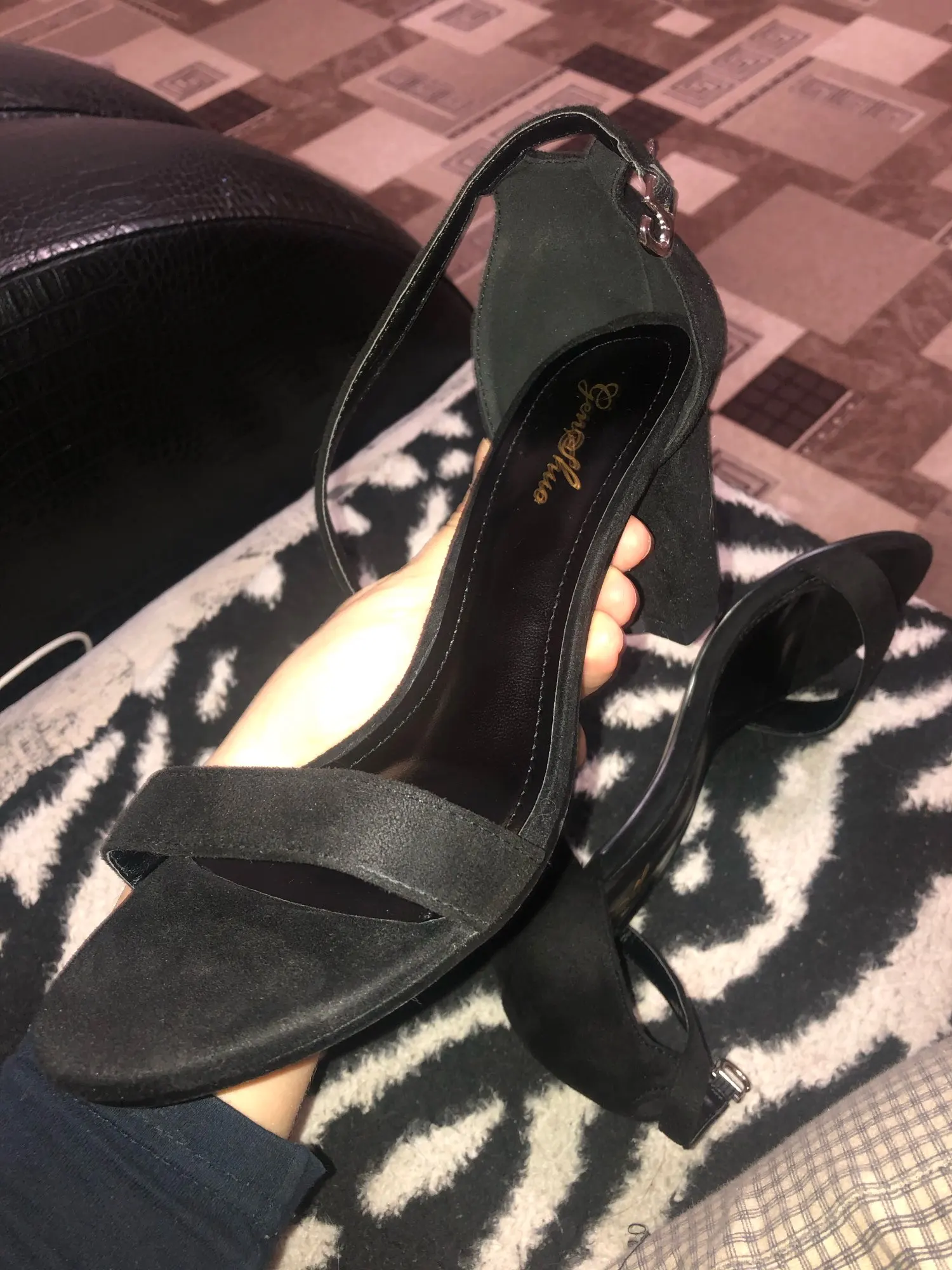 Босоножки пришли очень быстро. Полностью соответствуют описанию. Без брака и клея. Все аккуратно. На свой 36 брала по таблице замеров. Идеально подошли. каблук 7 см. Достаточно удобные. Но есть одно но....ОНИ УЖАСНО ПАХНУТ, ЭТОТ ЗАПАХ ВЕЗДЕ. Сейчас стоят на балконе, надеюсь выветрится.