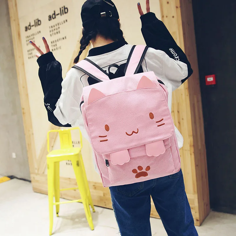 Холщовый Рюкзак для девочек-подростков, с вышивкой в виде кошки
