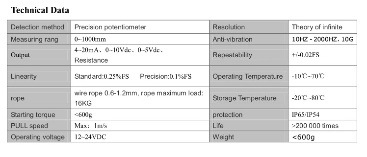 CALT 0-1000 мм Диапазон струнный потенциометр Датчик положения линейного преобразователя