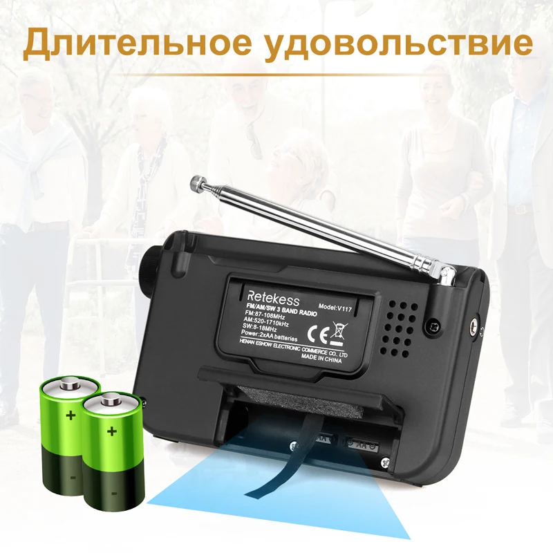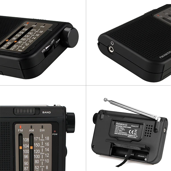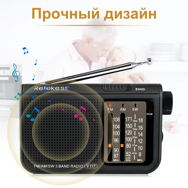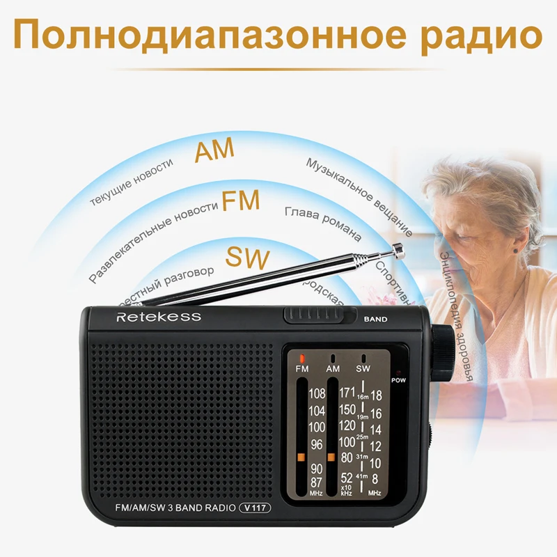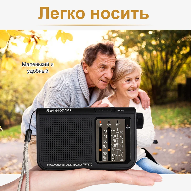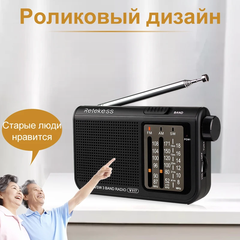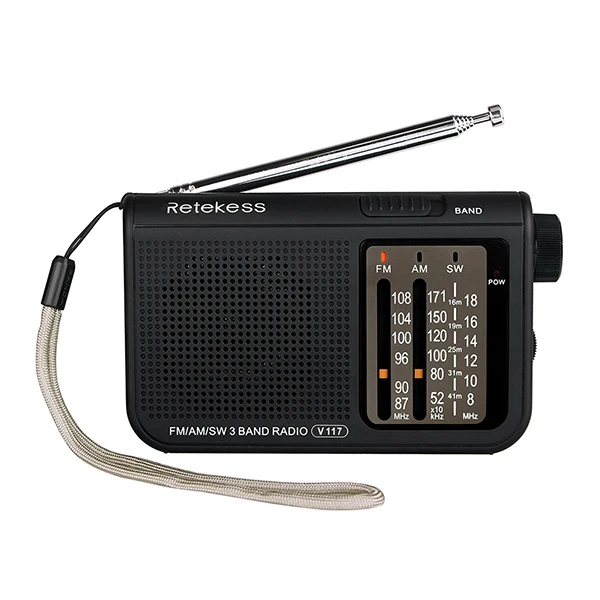 Транзисторное коротковолновое радио Retekess V117, аналоговое AMFM-радио, работает от батареи AA, с большими ручками, идеально подходит для использования в помещении и на пожилом