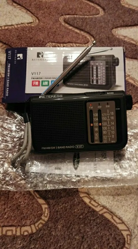 Посылка шла больше месяца. Упаковано пузыркой хорошо. Приемник небольшой, размером с мобильный телефон, но толще. Ловит станции хорошо. Ручная настройка. На 2 батарейки.Но дорого, за такие деньги можно больше по размеру взять или понавароченнее.