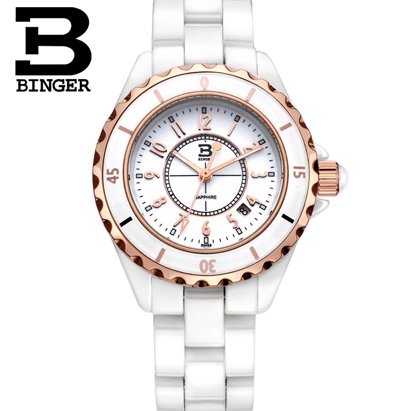 Швейцарские роскошные брендовые наручные часы Binger Space, керамические кварцевые женские часы 100 м, водонепроницаемые часы