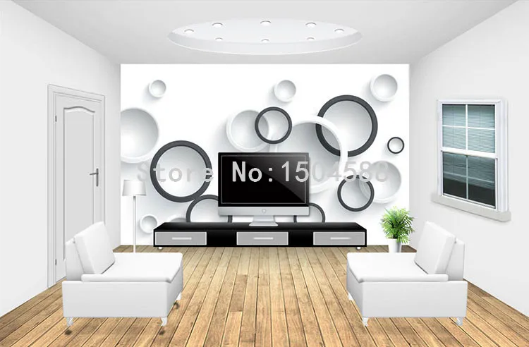 Пользовательские 3D стерео Настенные обои, современные черно-белые круги, фотообои, офис, кабинет, 3D пейзаж, обои