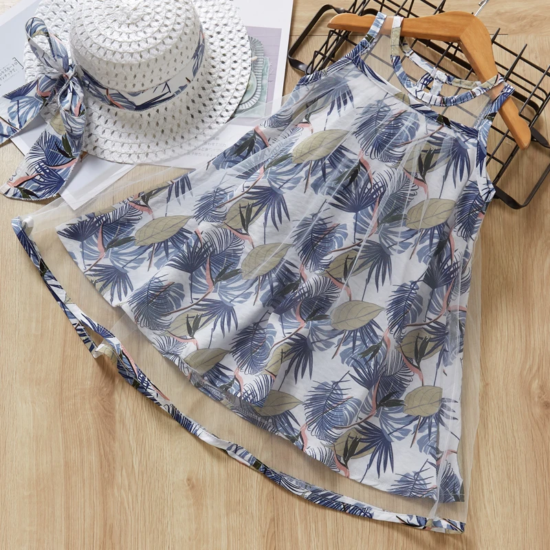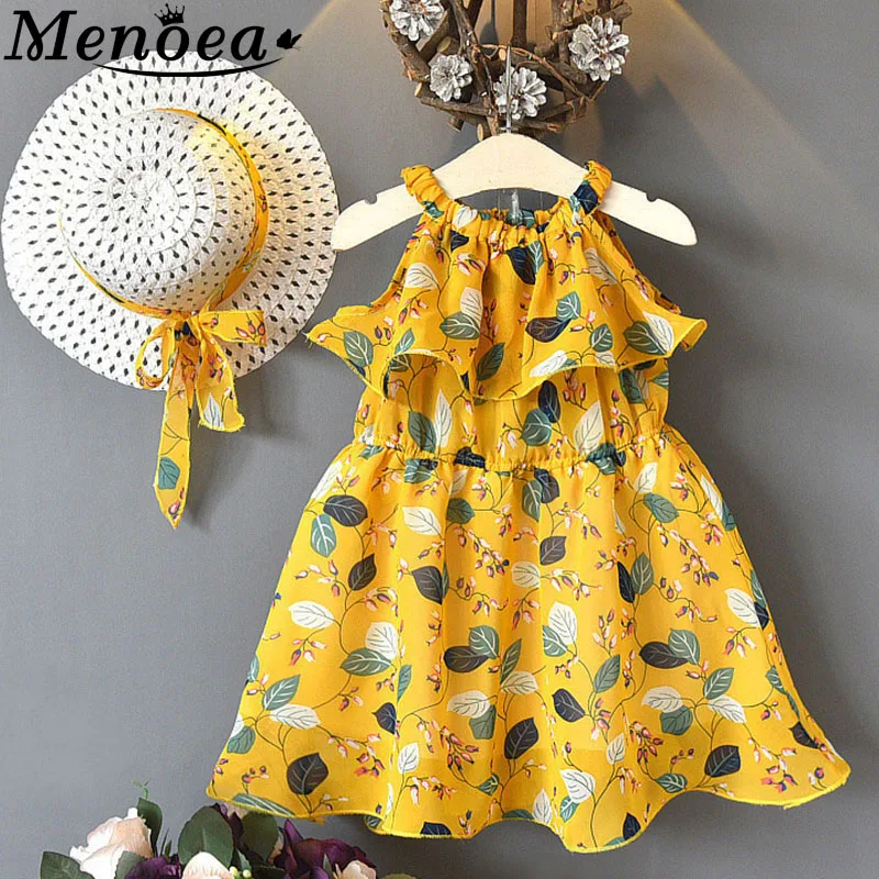 Menoeaдетская одежда, платье Коллекция 2022 года, Брендовое летнее платье для девочек красивое платье принцессы с цветочным рисунком и шляпой для От 2 до 7 лет, платье