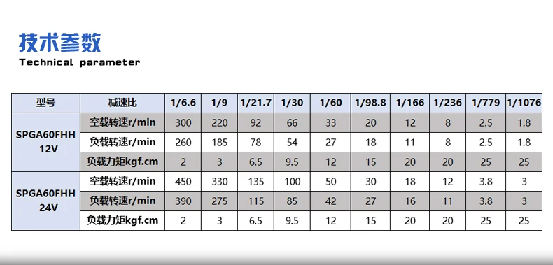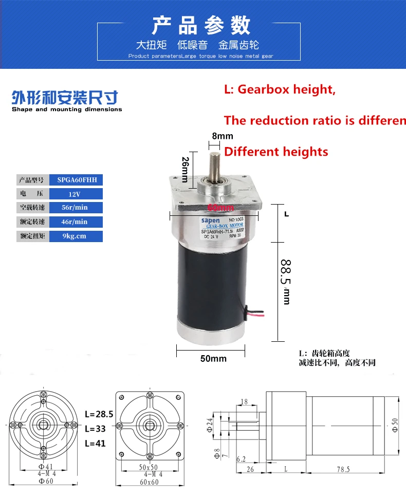 Мотор-редуктор SPGA60FHG, 60 мм, 12 В, 24 В, выходной вал 12-1000 обмин, 1 шт.