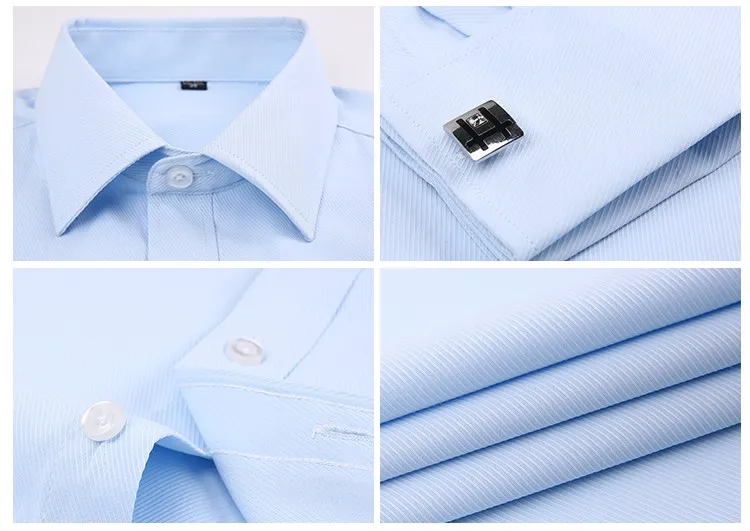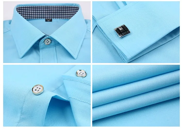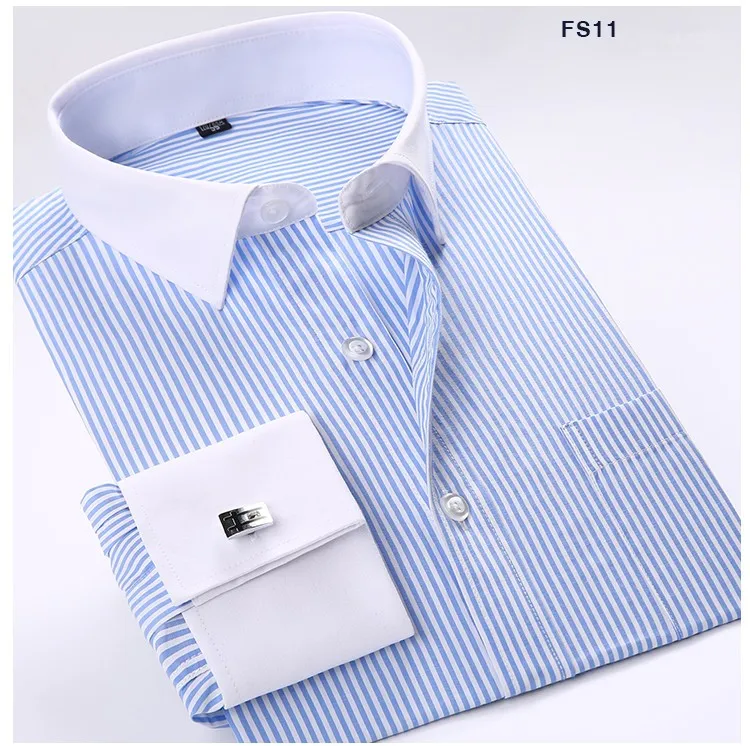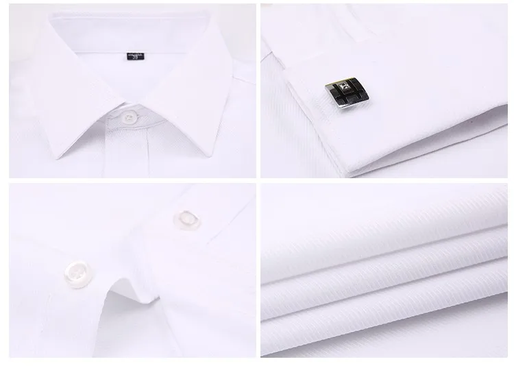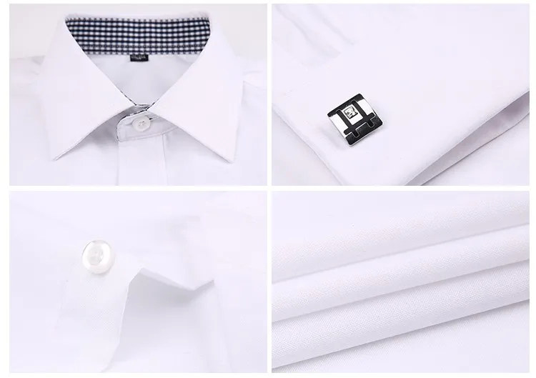 Французские запонки мужские нарядные рубашки с длинным рукавом однотонные социальные саржа мужская деловая рубашка классического кроя с белыми воротничками и легкая принтованная мужская одежда