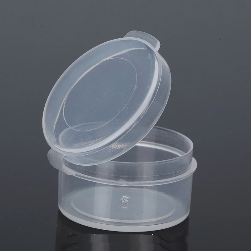 Бесплатная доставка, прозрачные пластиковые маленькие круглые коробки, упаковочная коробка для хранения, коробки для мелких деталей 100 шт.лот