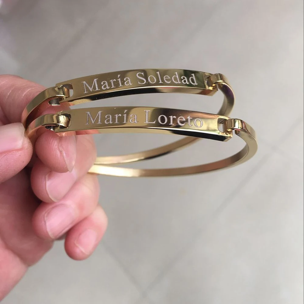 Браслет из нержавеющей стали с гравировкой на заказ, браслет с именем и инициалом, розовое золото, браслеты на заказ для женщин, подарки