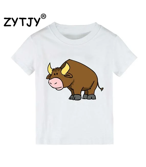 Детская футболка с принтом быка, рубашка для мальчиков и девочек, детская одежда для малышей, Забавные топы, футболки