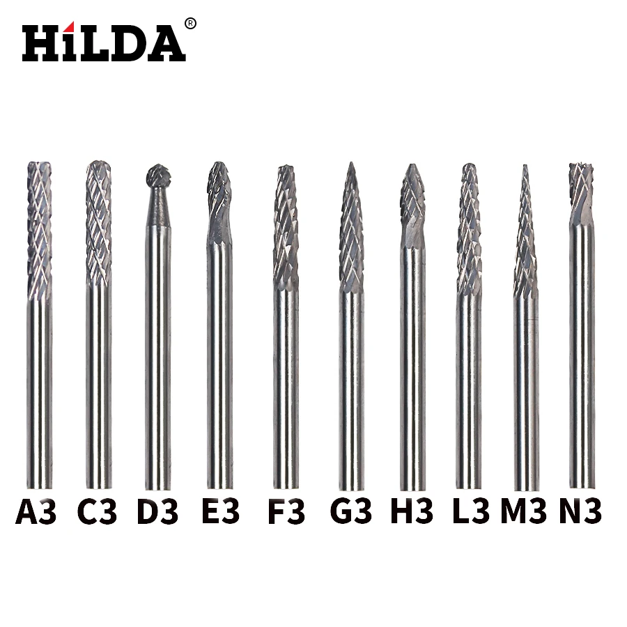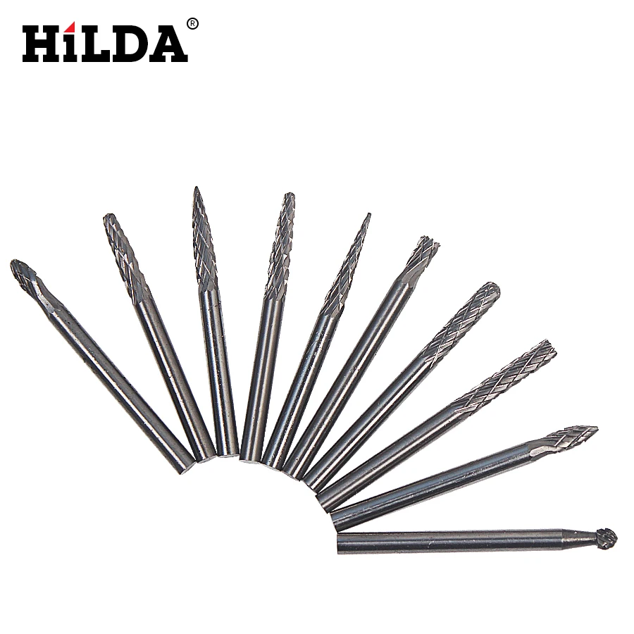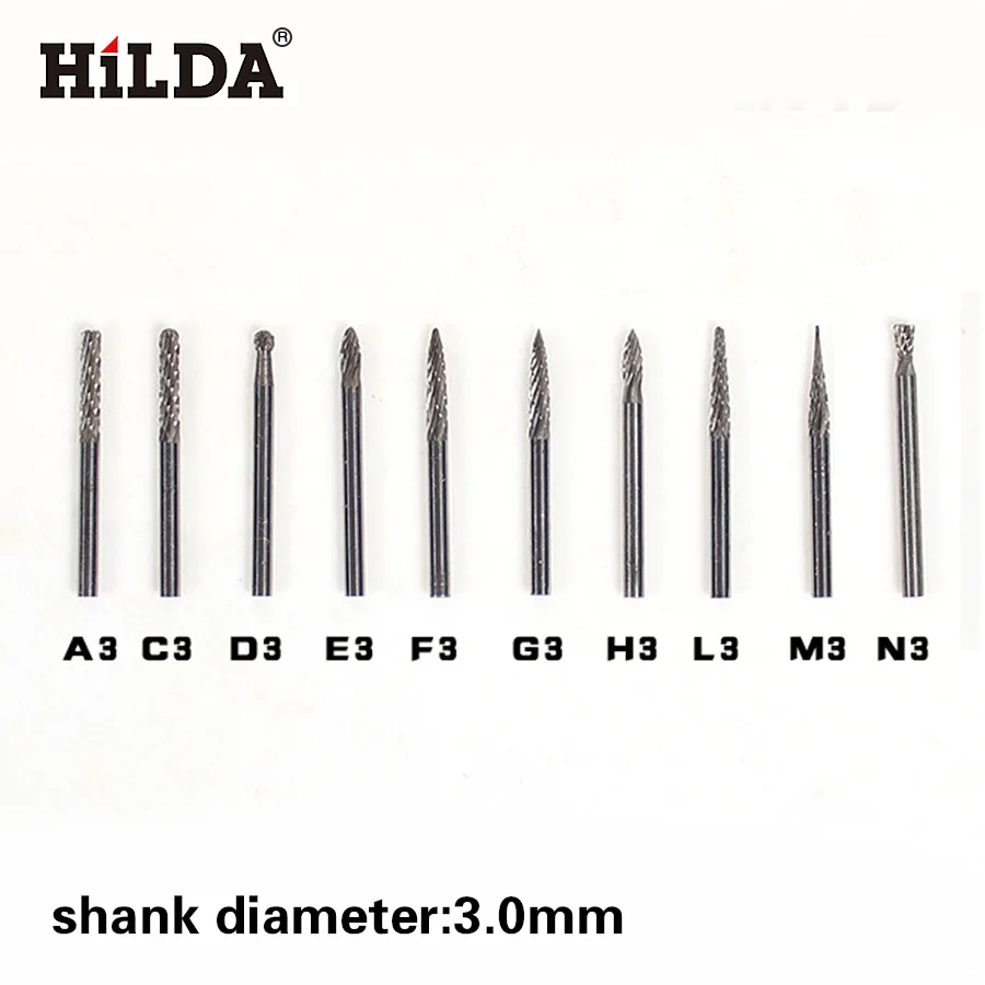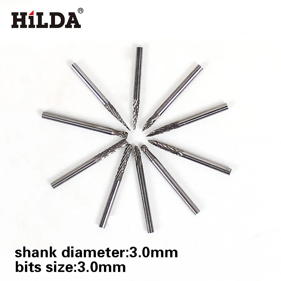 HILDA 3 мм (18 ") карбид вольфрама заусенцы 3 мм роторные режущие файлы набор CNC гравировки КНИ режущей кромки диаметр 3 мм 10 шт.компл.