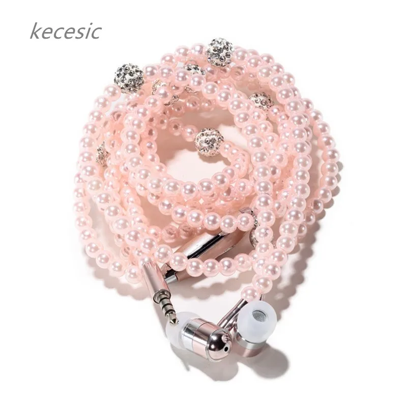 Kecesic модные Украшенные бриллиантами жемчугом ожерелье цепь наушники стерео наушники с микрофоном для iphone Samsung ПК элегантный стиль