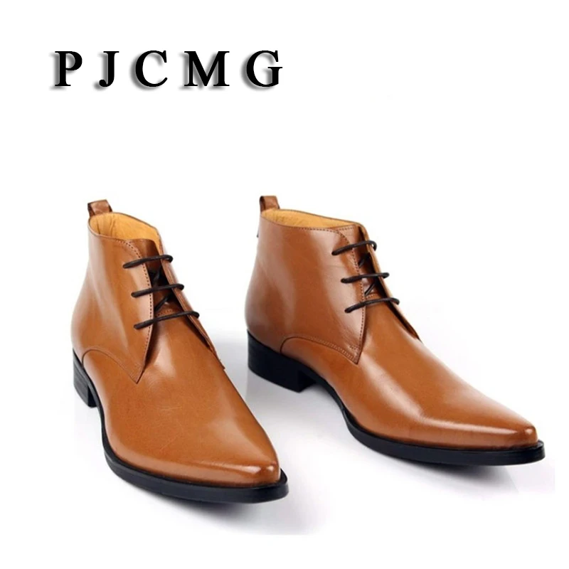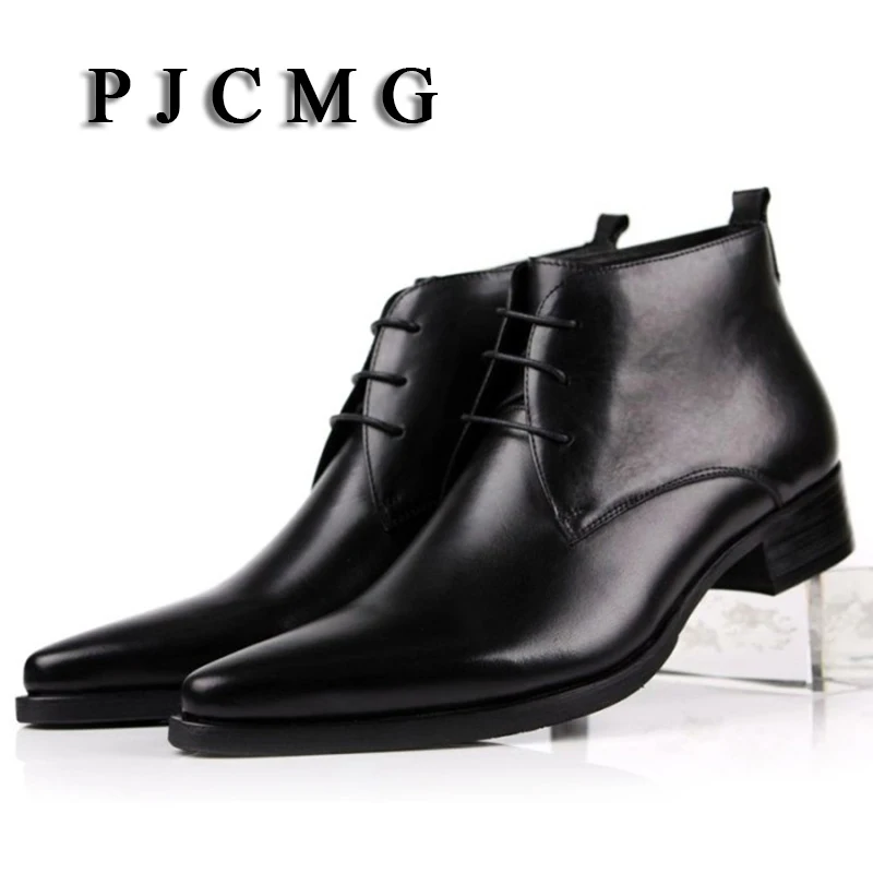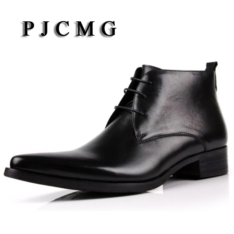 Классические винтажные ковбойские ботильоны pjbayfahsion, повседневные коричневыечерные дизайнерские Мужские модельные ботинки из натуральной кожи с острым носком