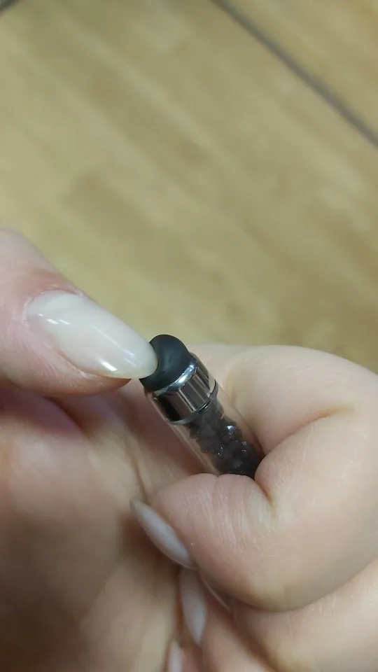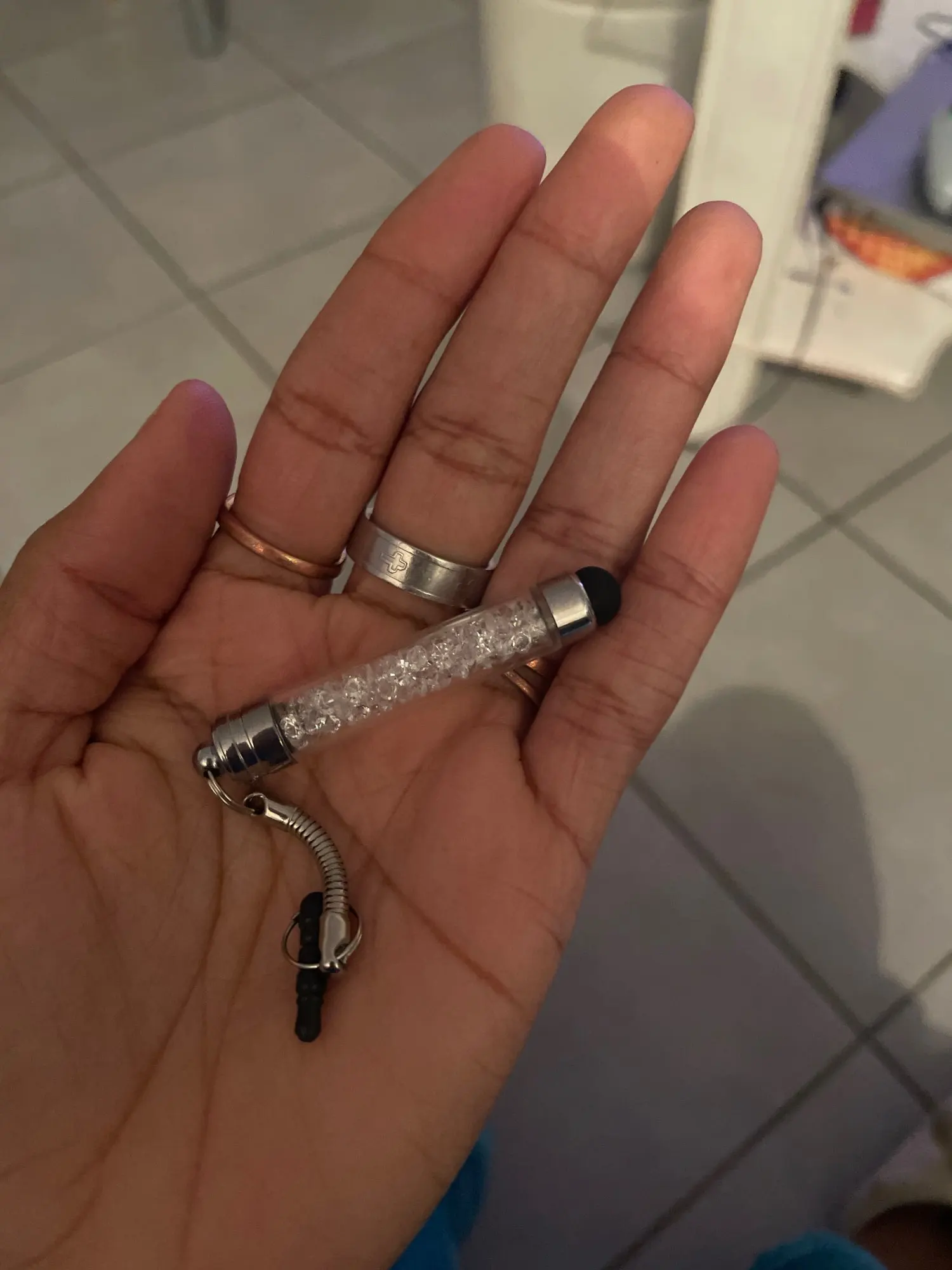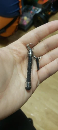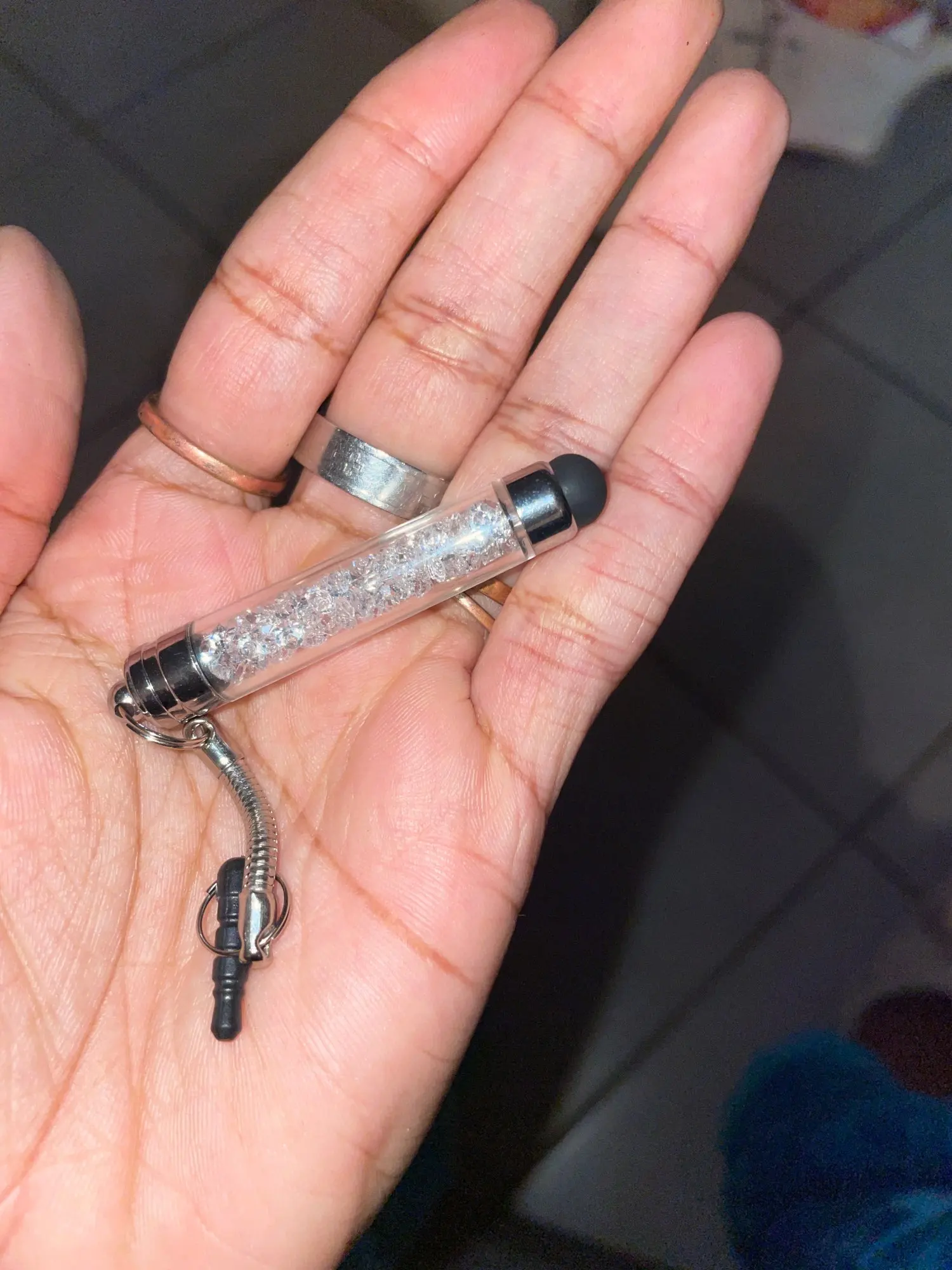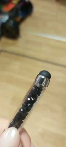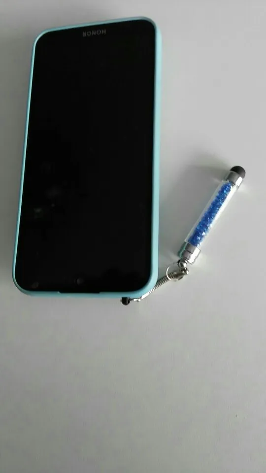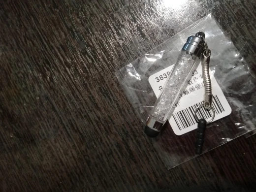 Заказ дошел быстро. Сделан аккуратно. Камешки разноцветные, симпатично переливаются. Стилус работает.