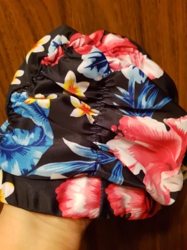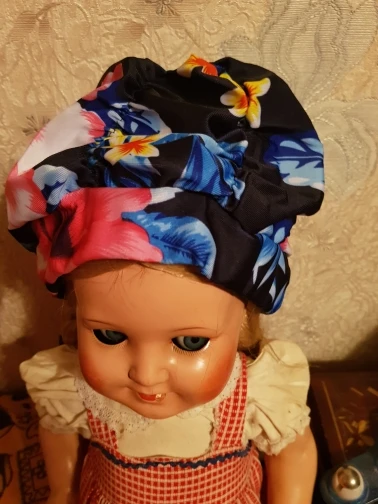 мне понравилась, волосы длинные, убираются под шапочку без проблем, она тканевая, будет промокать, но для меня важно, что она хорошо тянется и легко одевается, в отличии от силиконовой