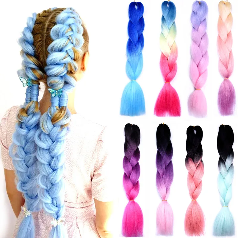 Полная Звезда 1 шт. Синтетические Черные серые волосы высокотемпературные волосы Омбре плетенпряди 24 дюйма Джамбо косы наращивание волос