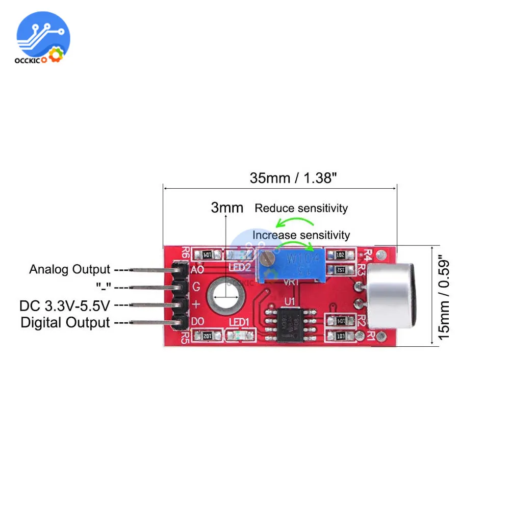 5 шт., чувствительный звуковой микрофонный датчик, модуль обнаружения для Arduino AVR PIC