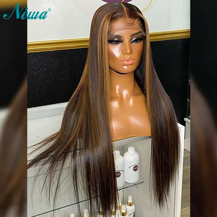 Парик Newa Hair окрашенный, прямые бразильские искусственные волосы, 4 х4