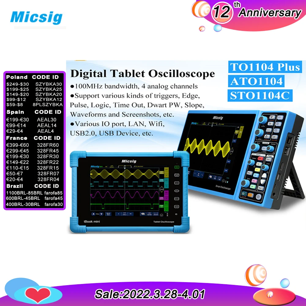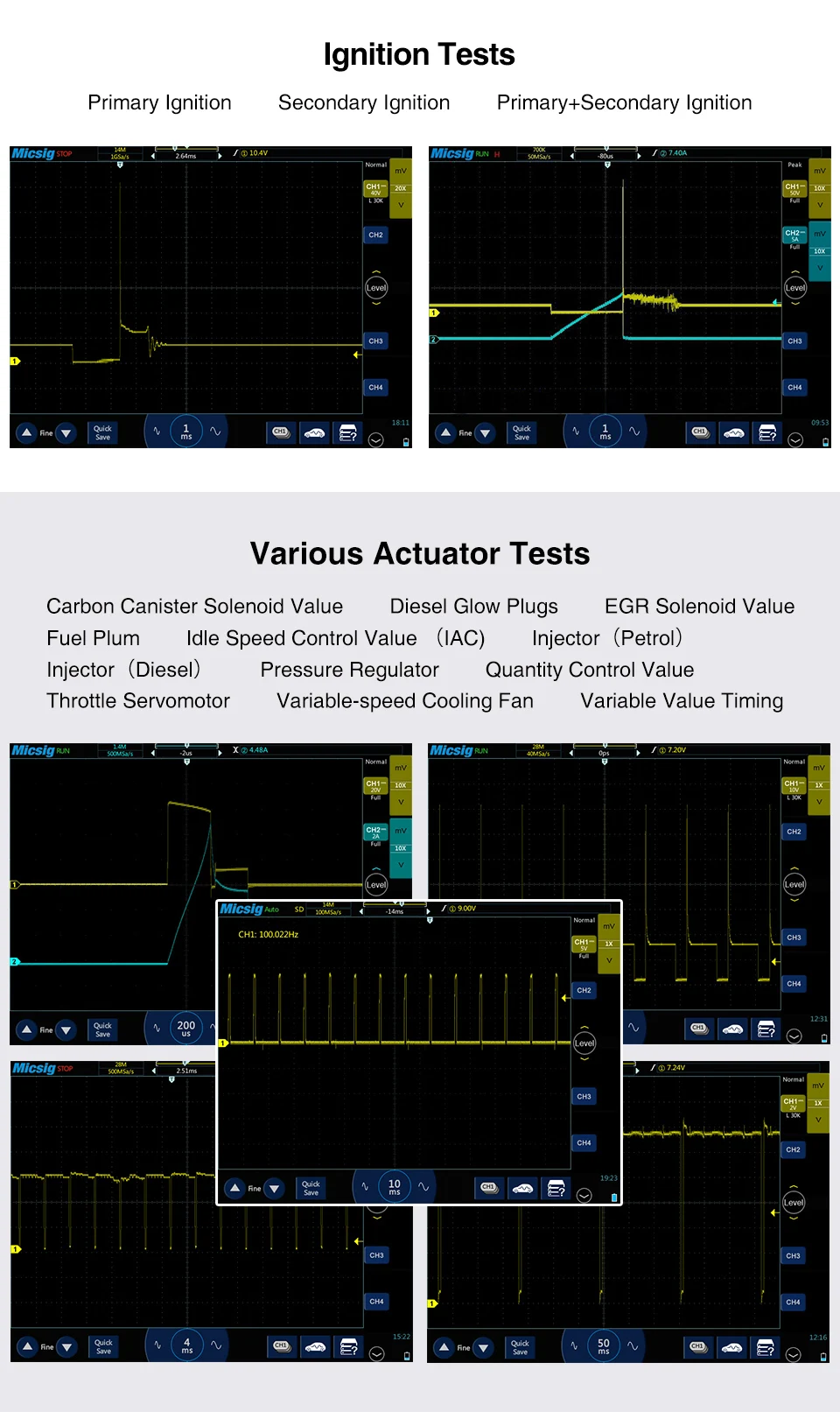 2022 горячая Распродажа Micsig автомобильный планшет Портативный Осциллограф портативный Lgnition осциллограф 100 МГц 24CH ATO1104