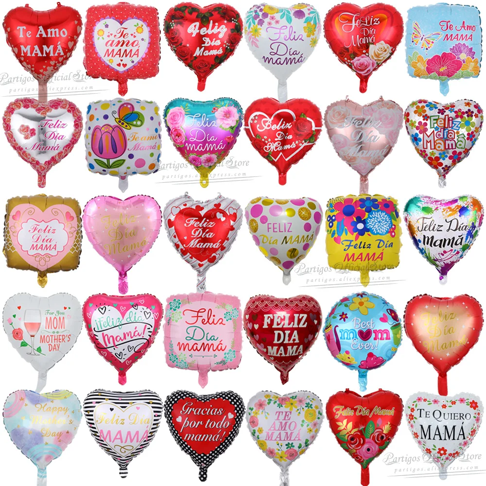 50 шт 18-дюймовые воздушные шары в форме сердца на день матери, подарки для мамы с испанским принтом, фольга, гелиевые шары, украшение на День Матери