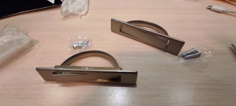 Комплектные крепёжные винты слишком короткие. Сразу под замену. А ручки удобные