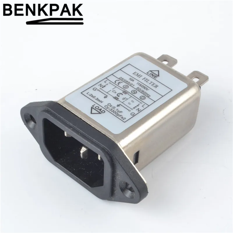 Штекерное гнездо IEC 320 C14 для монтажа на панели, линия электропитания, фильтр EMI 10a 125250 В, разъем