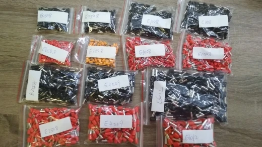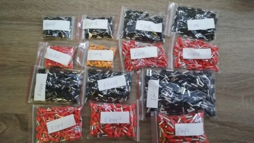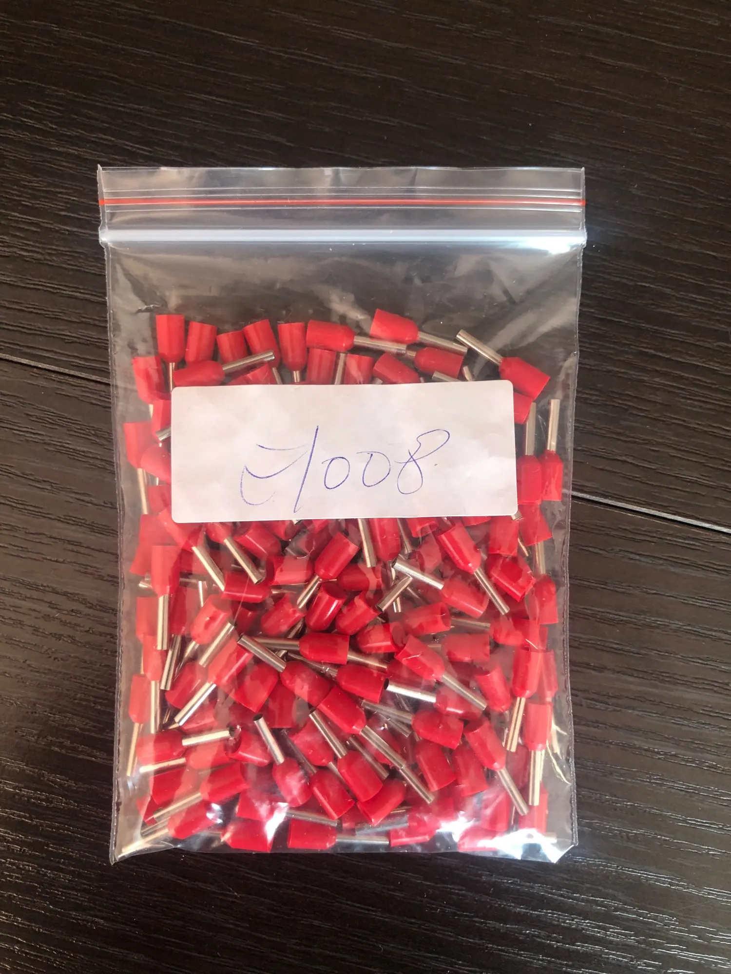 Изоляционные изоляционные клеммы E1008, 1 мм2, 18AWG, для проводов, черные, желтые, синие, красные, зеленые, 100 шт.