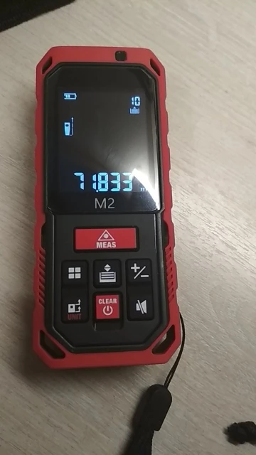 Модель М2, с дальностью 70м, логотипа и названия фирмы не было, в переписке продавец подтвердил подлинность аппарата. В комплекте чехол без логотипов шнур и мануал. На обратной стороне коробки нарисованы 9 основных расчетов, функционал больше чем в описании, измеряет углы плашмя и на боку, замер и расчеты делает мгновенно, измеряет катеты через препятствие по углу и длине гипотенузы, также измеряет высоту по длине прилегающих сторон и углу между ними, фактически является аналогом bosch glm50 только без блютуз, но он не всем нужен качество отличное, внешний вид не придерешься. При ярком солнце экран отлично читается, нужно смотреть на экран под углом менее 90° и все замечательно видно. замеры делает на ура больше чем заявлено, заказ делал из РФ, пришло за 6 дней. на экран наклеил универсальную пленку для планшетов, легла замечательно замеры на дальние дистанции лучше делать со штатива ибо микробные шевеления руки на приборе в конечной точке превращаются в метровые колебания по сторонам