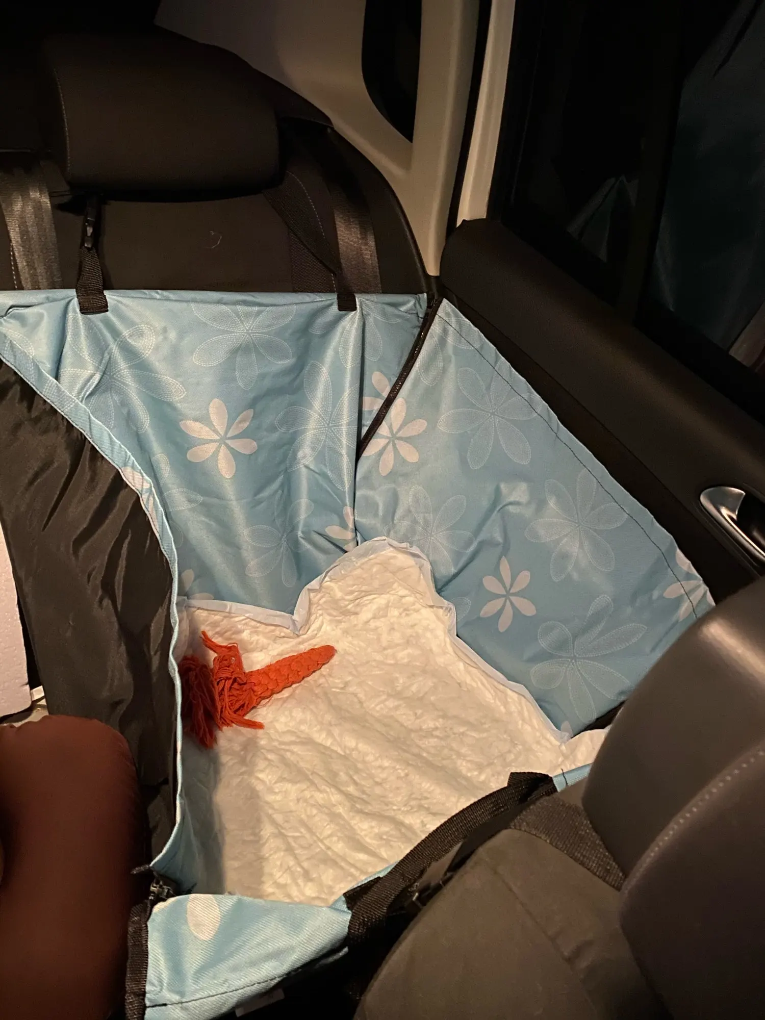 Доставка прямо домой через 3 дня после заказа! Отличный гамак для собаки. Единственный минус - очень сильный запах, который, надеюсь, выветрится скоро. С продавцом не общалась