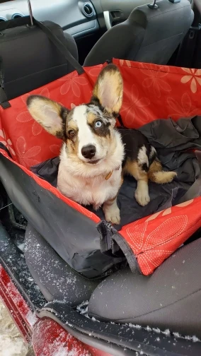 Очень быстрая доставка, полученная менее чем за две недели. Выглядит солидно, будь то на швах и застежках. Очень удобный в установке, регулируемый ремень и ремешок. Легко очищаемая водонепроницаемая ткань. С точки зрения безопасности собаки выглядит очень хорошо. Соотношение цены и качества