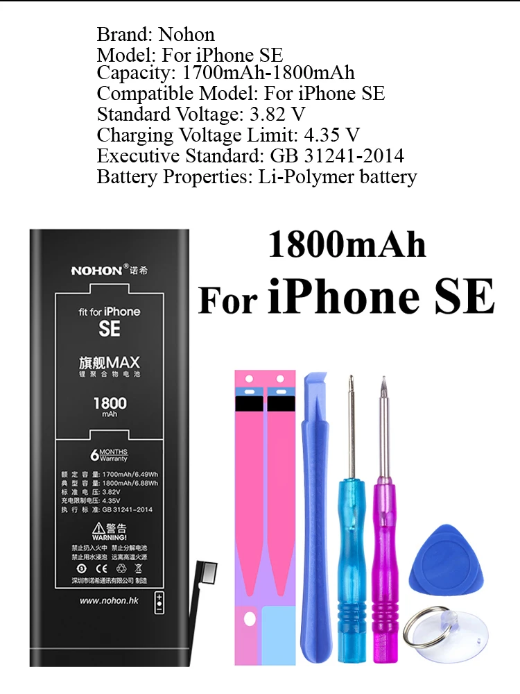 Nohon батарея для iPhone 6 6G 5S 5C SE 6S 7 iPhone5s iPhone5c iPhone 6 iPhone7 Замена телефона литиевые батареи + Инструменты