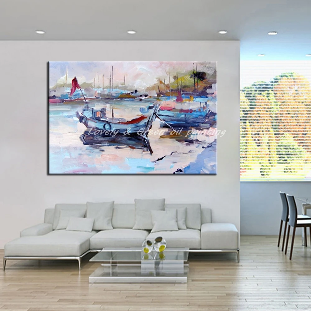 Описание товара:Ручная роспись холст картина абстрактное искусство плакат Лодка Пейзаж Картина маслом настенные картины для гостиной домашний декор настенная живопись.