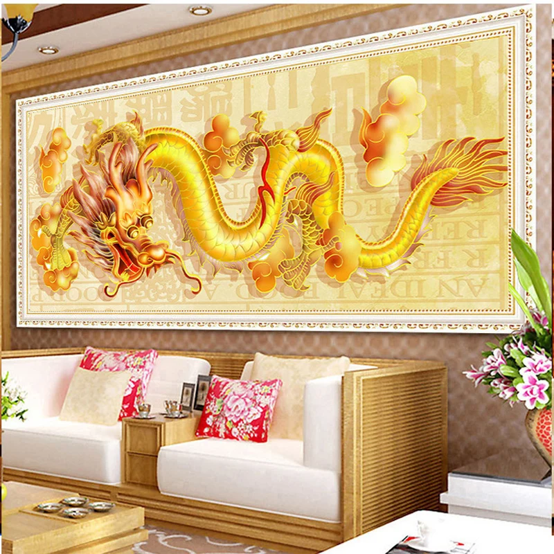 Алмазная вышивка сделай сам, круглые алмазные восточные Золотые драконы, полноразмерная 5D картина из страз, вышивка крестиком, рукоделие